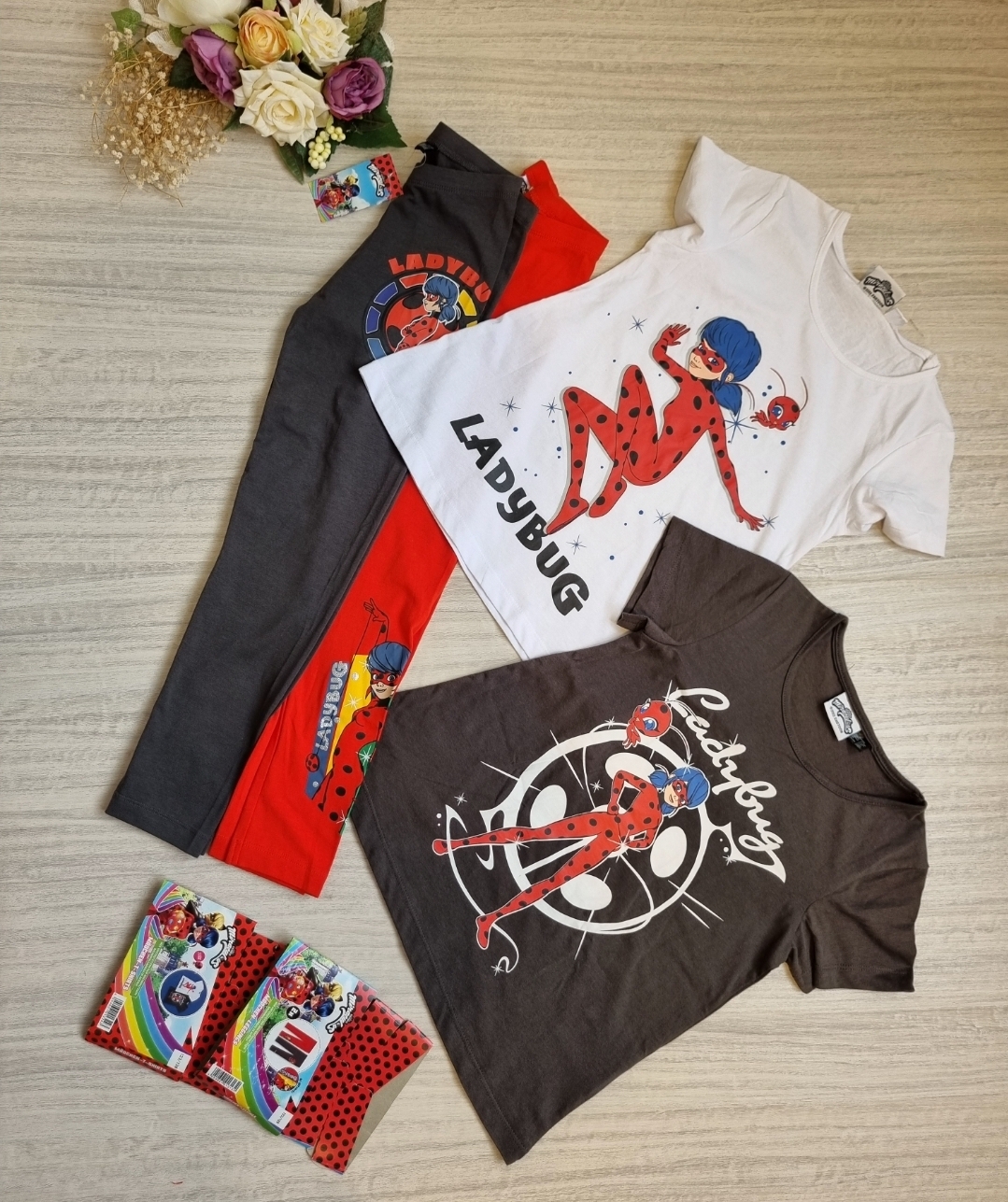 ست ۴تایی لگ و تیشرت نخی دختر کفشدوزکی محصول آلمان