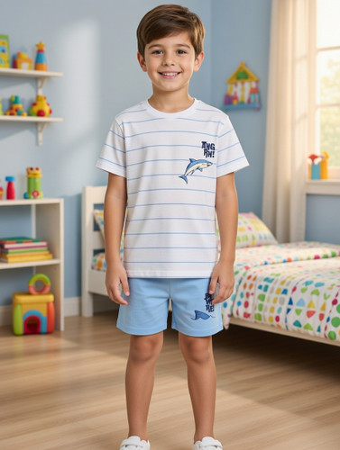 ست تیشرت و شلوارک نخی پسرانه طرح دلفین برند الایو آلمانناموجود