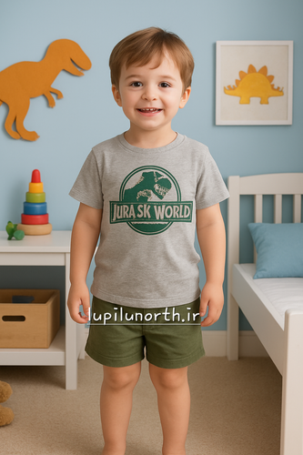ست تیشرت و شلوارک نخی نوزادی طرح ژوراسیک