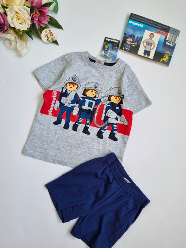 ست تیشرت و شلوارک نخی پسرانه طرح سام آتشنشان