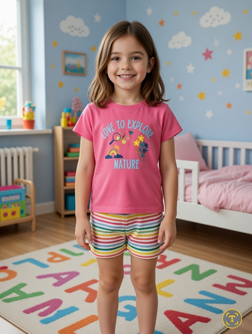 ست ۵ تیکه تیشرت و شلوارک نخی دخترانه لوپیلوناموجود