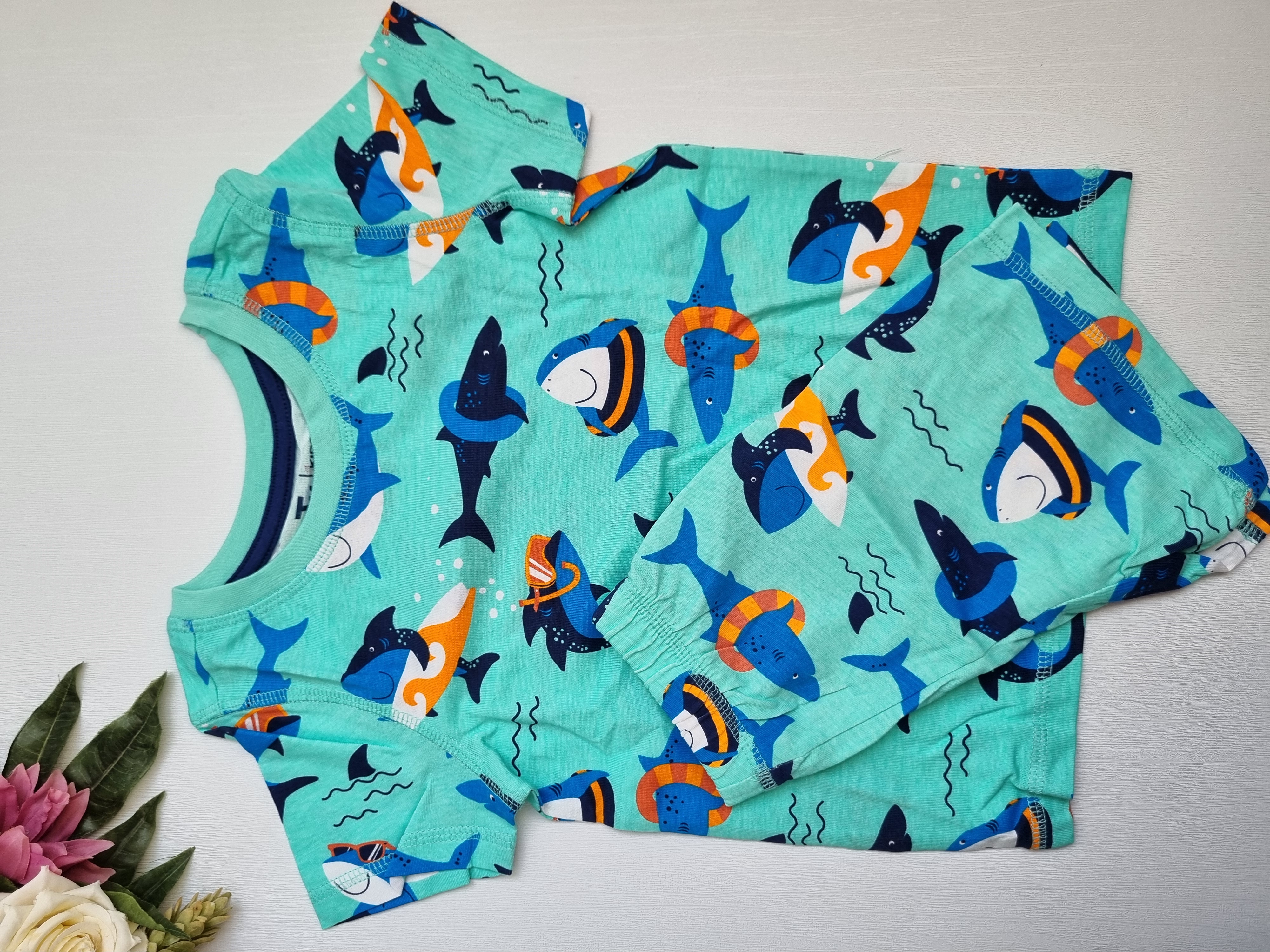 ست تیشرت و شلوارک نخی پسرانه طرح دلفین برند الایو آلمانناموجود