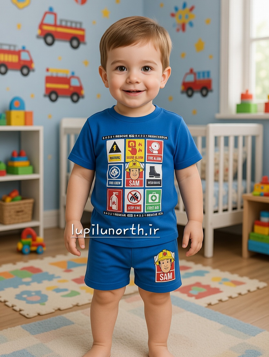 ست تیشرت و شلوارک نخی پسرانه طرح سام آتشنشان