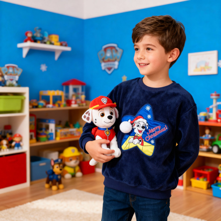 بلوز جنس تدی رنگ سرمه ای پسرانه طرح سگهای نگهبان