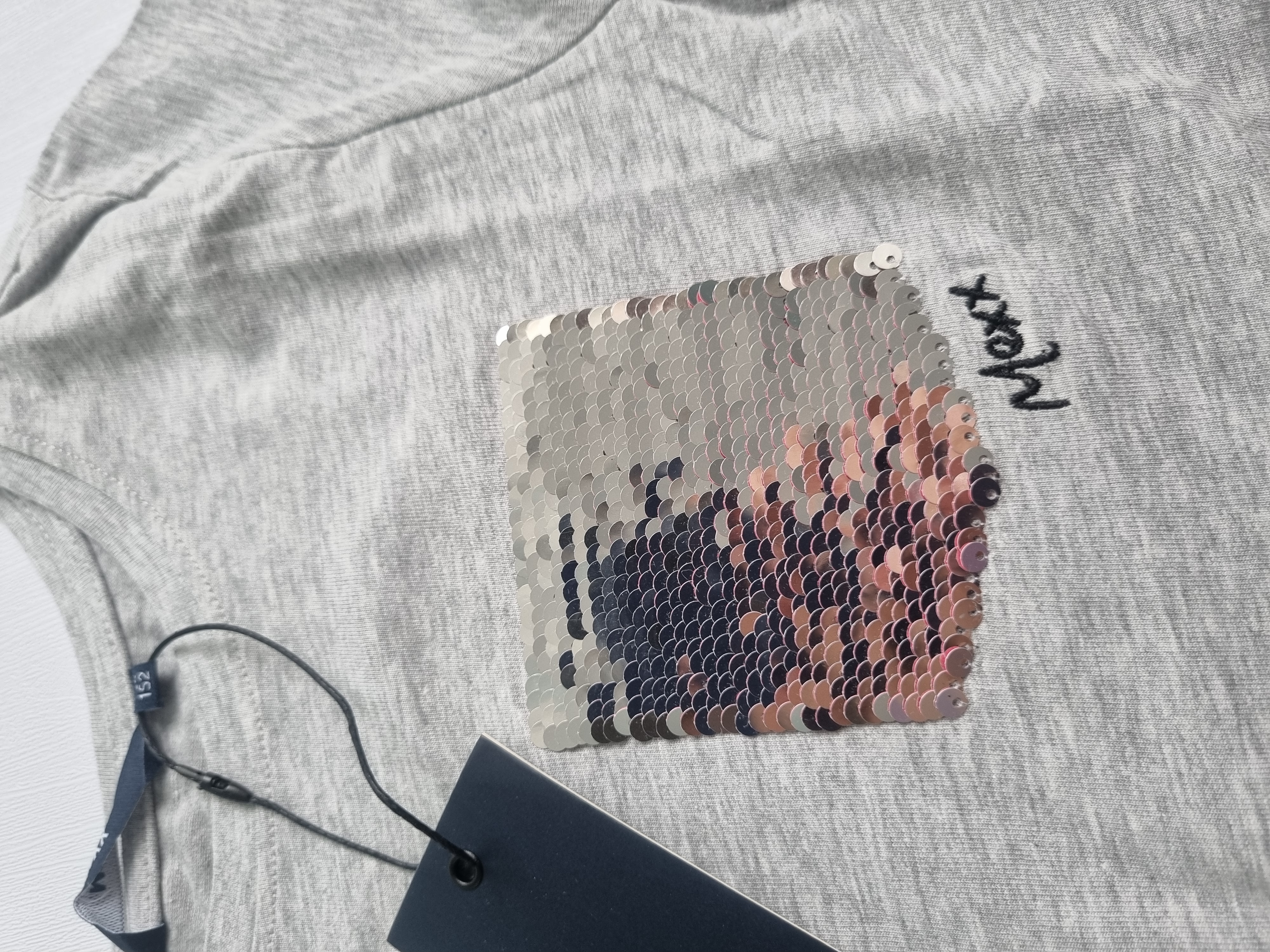 جزئیات: جیب روی کار پولک برگردان در دو رنگ طوسی و صورتی