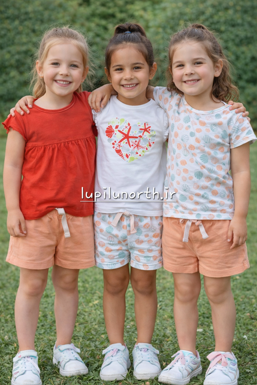ست ۵ تیکه تیشرت و شلوارک نخی دخترانه لوپیلو