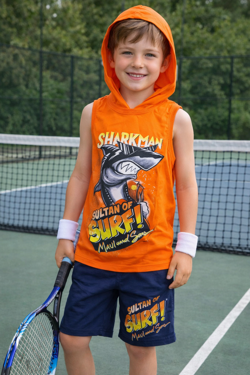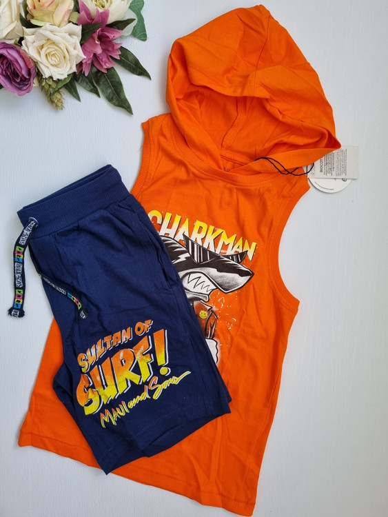 سایز ۷تا۸سال: قد تاپ ازسرشانه۵۱پهنا۳۴ قدشلوارک۳۷کمر۲۹فاق۱۹ دارای بند تنظیم کمر پهنای کمر۴