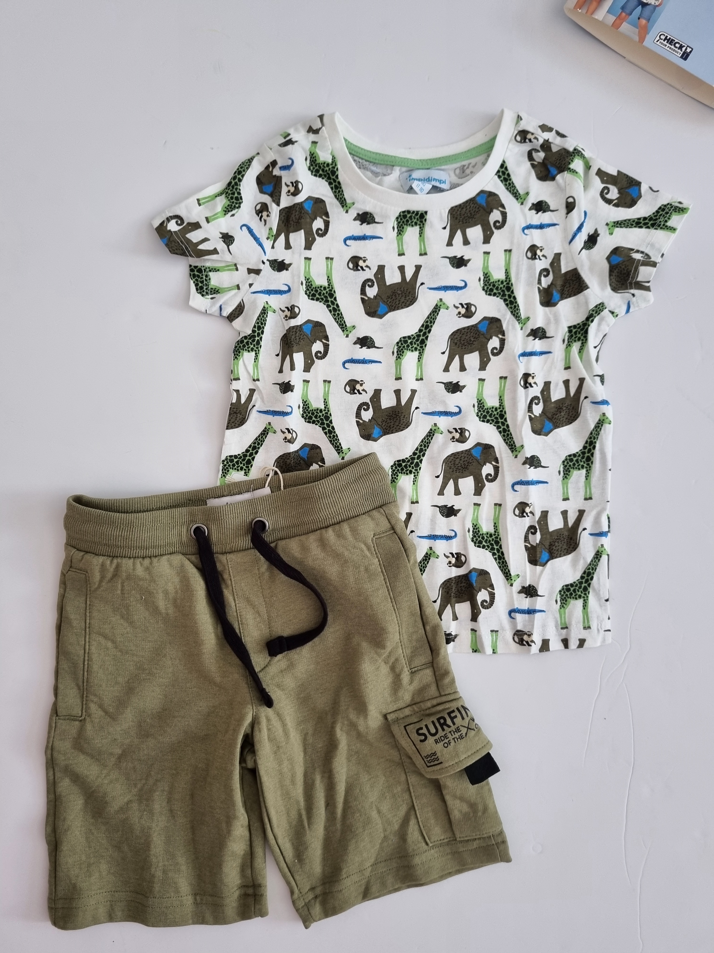 جزئیات ست: شلوارکها دارای بند تنظیم کمر ،شلوارک سبز ۳جیب و آبی دو جیب