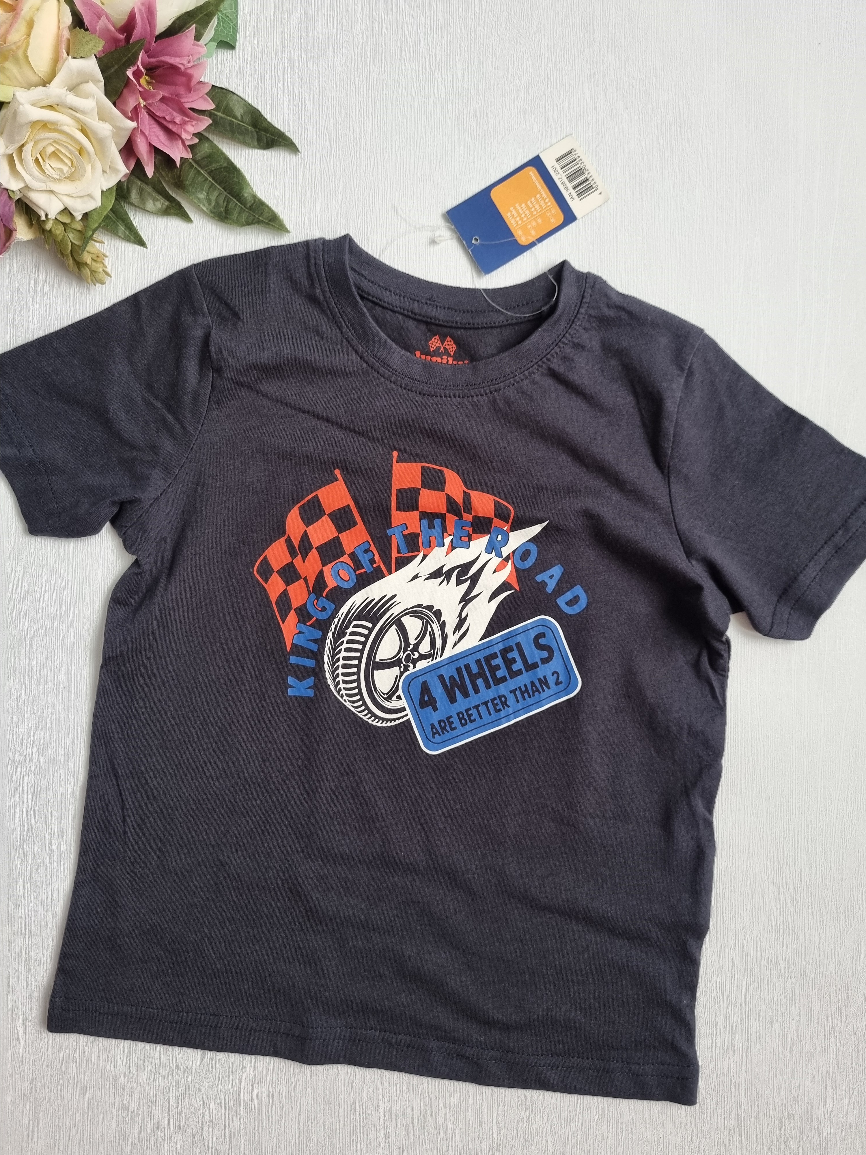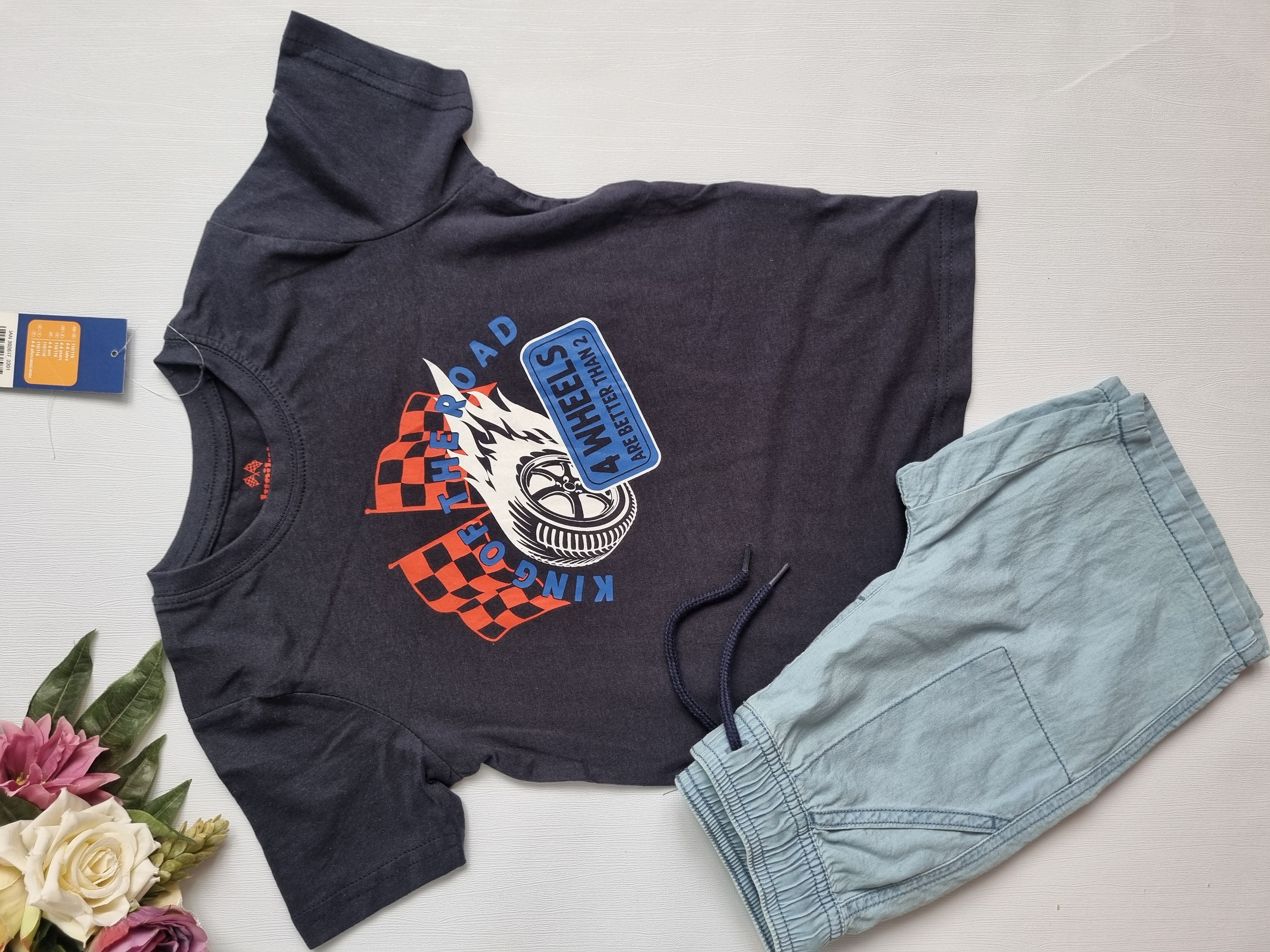 سایز۱۱۰_۱۱۶مناسب۴تا۶سال: قد تیشرت۴۵ پهنا۳۵ عرض کمر شلوارک۲۷ فاق۱۶ قد ۳۳