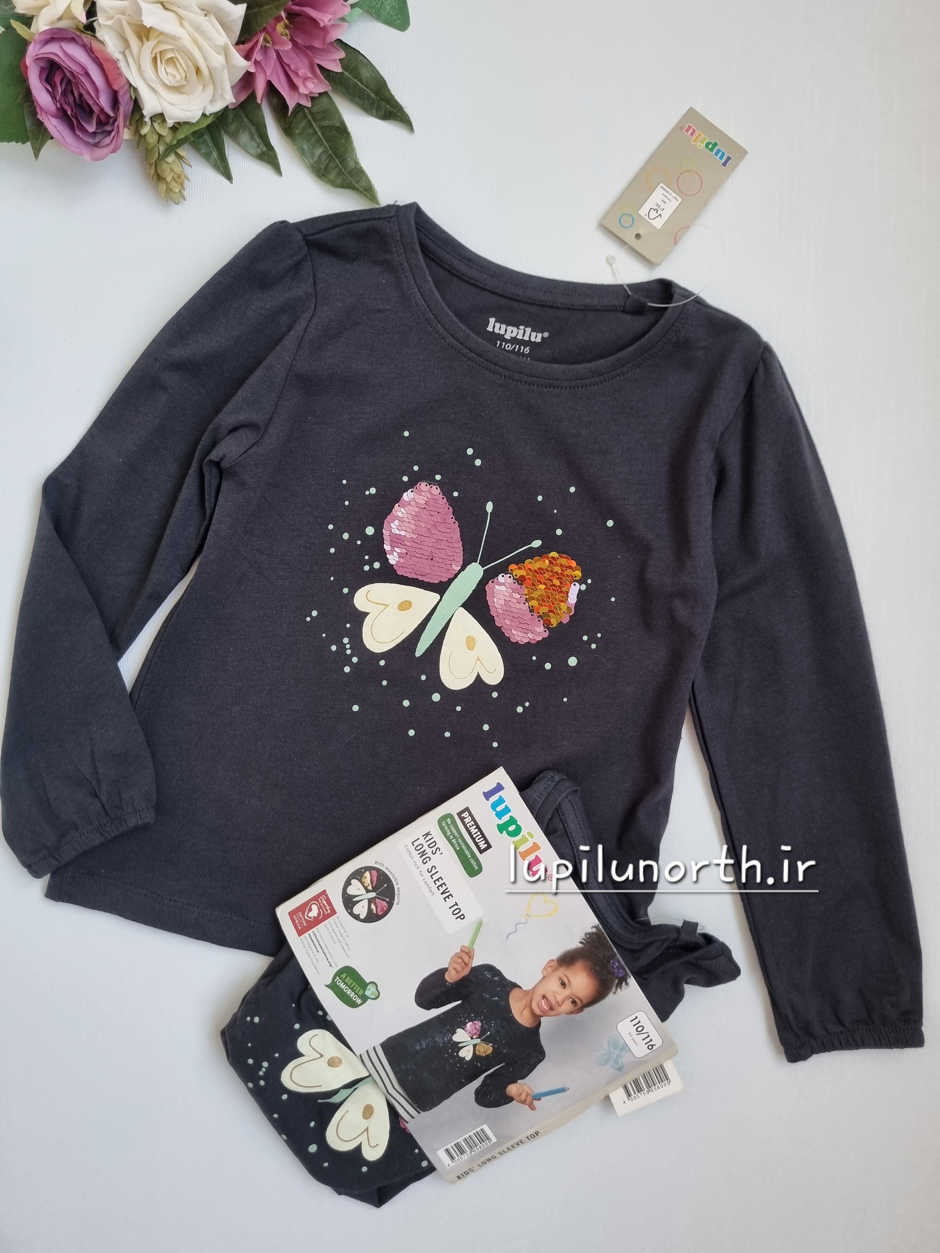 بلوز نخی پولک برگردان دخترانه برند لوپیلو