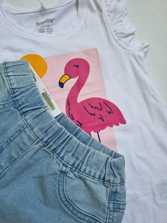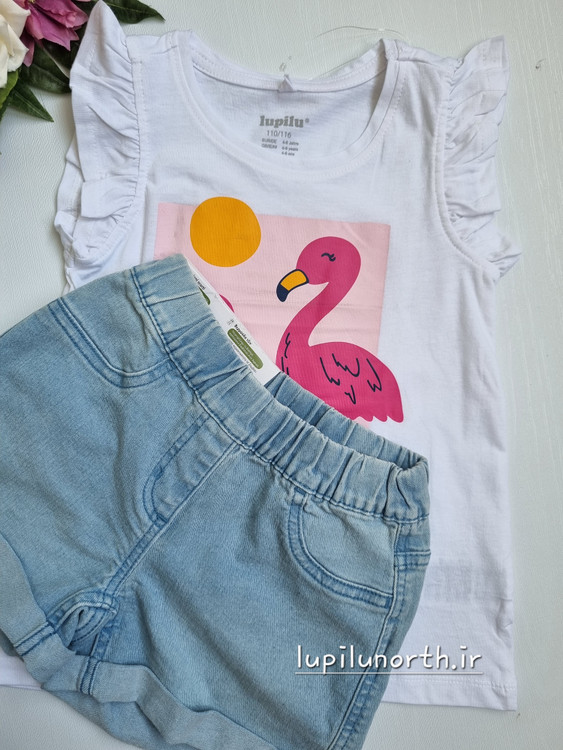 جنس تیشرت۱۰۰درصد پنبه جنس شلوارک جین ۷۹٪پنبه: شلوارک دارای کش رگلاژ کمر