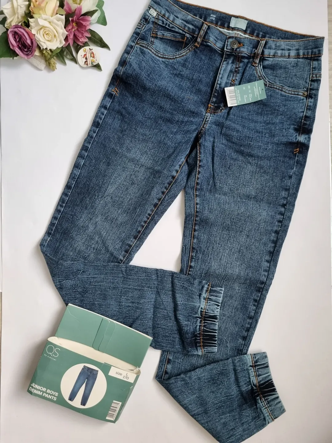 شلوار اسلش جین برند QS در دو رنگ و طرح کش رگلاژ کمر جای کمر بند روی کمر زیپ ykkژاپن دو جیب رو دو جیب پشت کار پکدار شیک و خوشرنگ : به اندازه ها توجه کنید